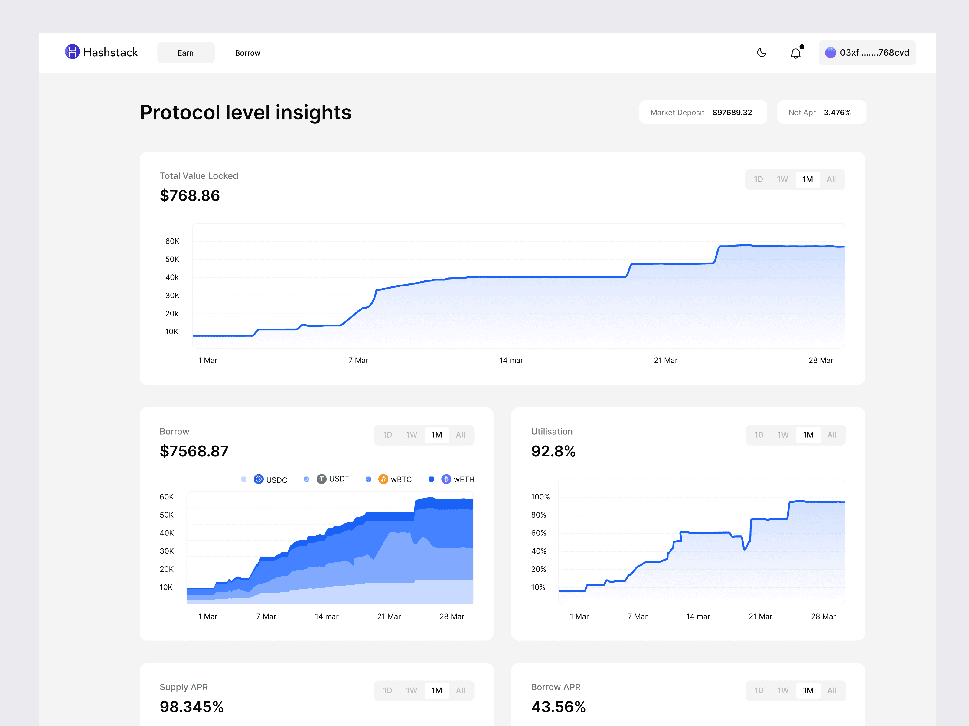 Hashstack is a permissionless DeFi lending protocol that enables users to borrow up to 500% of their collateral, offering significantly higher capital efficiency compared to traditional platforms.