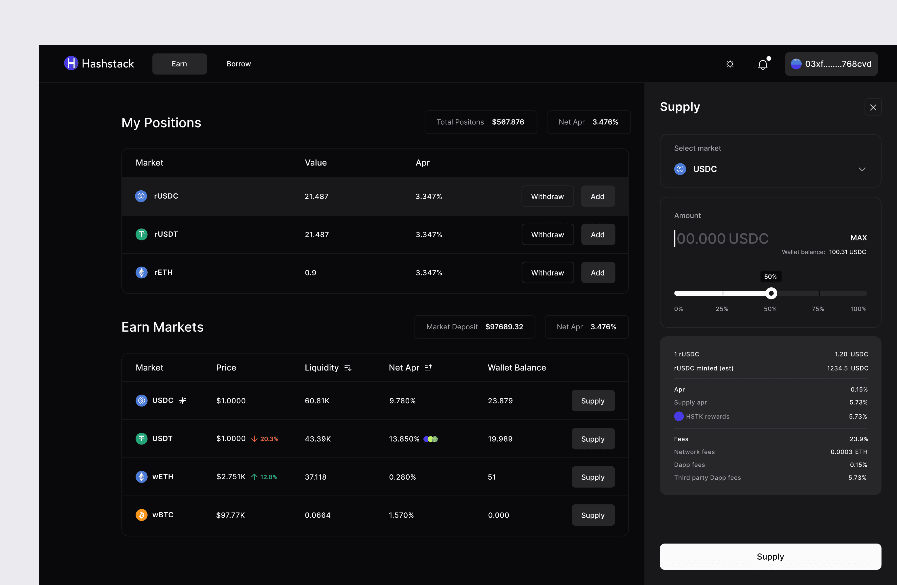1. Intent-based sections (Earn / Borrow).